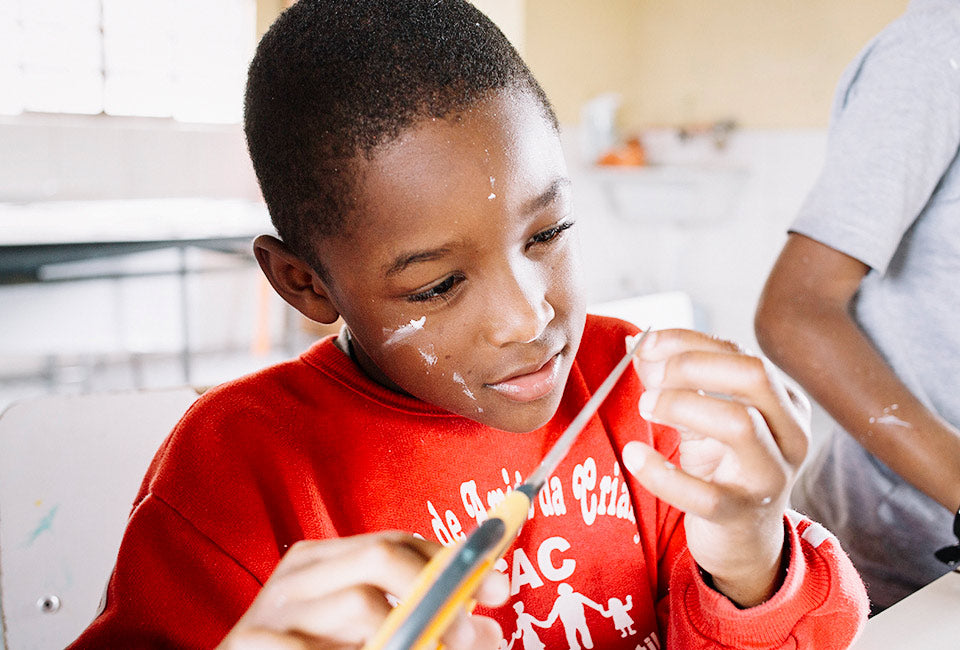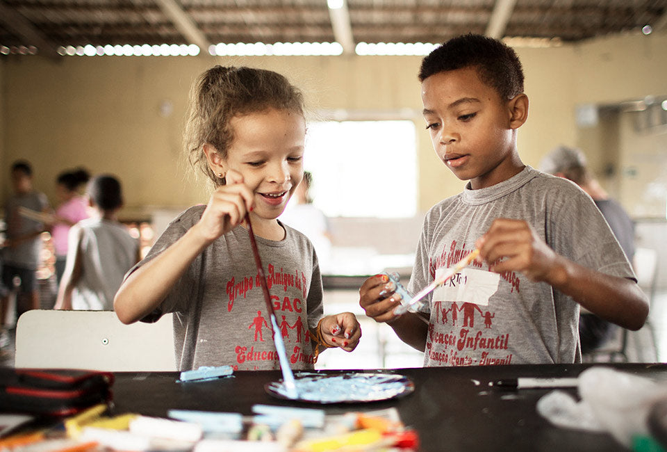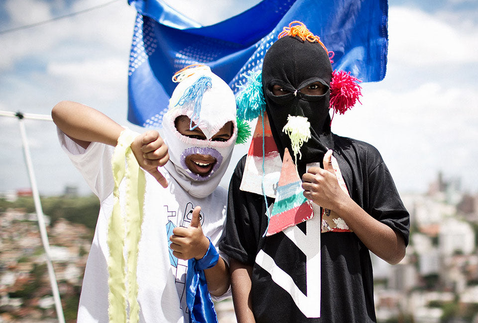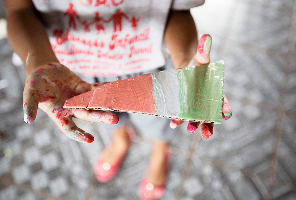 Cutting, painting, drawing, making a mess and blowdrying – ARTHELPS spent two weeks experimenting with young creatives at the favela in Belo Horizonte, lots of different materials and colours were used. The team created facinating motives which went on to be at the heart of our first t-shirt collection.