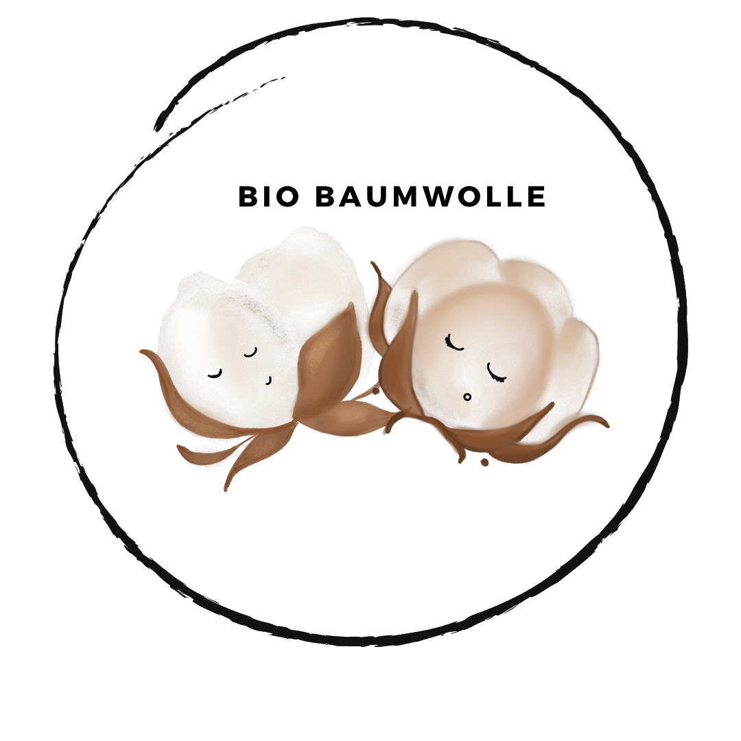 BIO-BAUMWOLLE - Unsere Baumwolle ist zu 100% Bio. Unsere Lieferanten wie auch wir achten hier durch eines der höchsten Zertifikate auf absolute Transparenz. Bei unseren Stoffen werden keine Schadstoffe und Chemikalien verwendet. Werder bei der Stoffherstellung noch bei der Pflanze selbst. Die Tinte unserer Eigendesigns ist wasserbasierend und unbedenklich für Mensch, Tier und Umwelt.