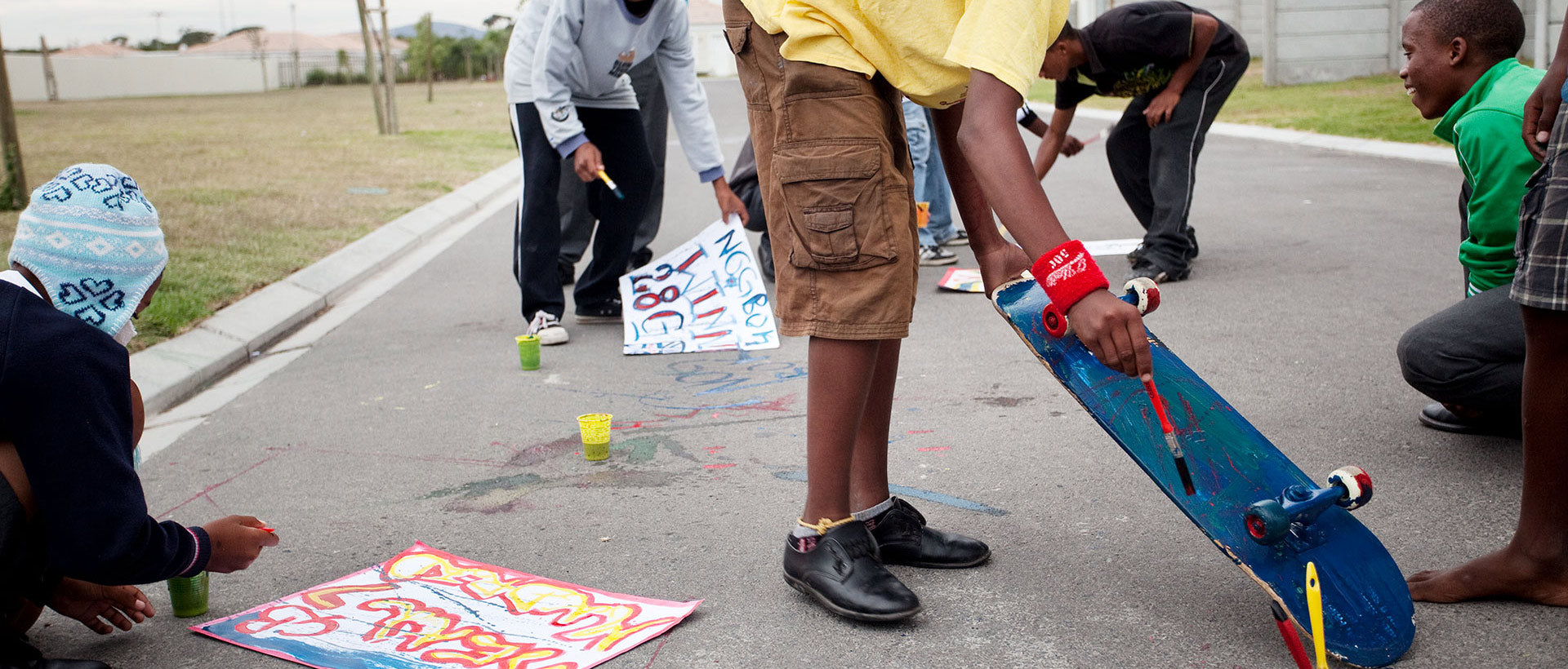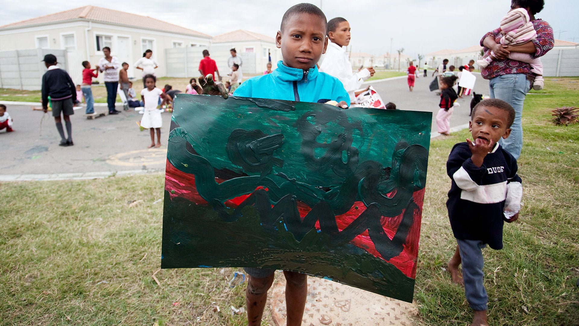 2011 unterstützte und begleitete ARTHELPS in Südafrika ein fantasievolles Kurzprojekt mit Kindern eines Slums am südafrikanischen Melkbosstrand.