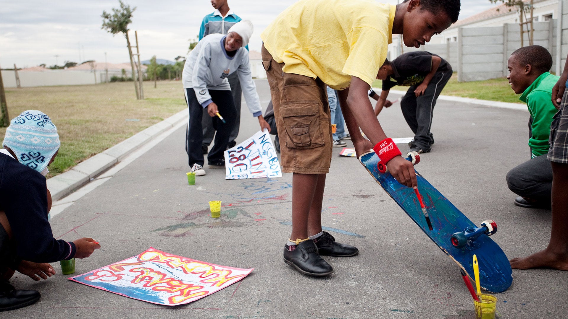 Man nehme Bertie, einen jungen Surflehrer, und viele kreative junge Köpfe – das ist die Idee hinter MELKBOS KIDS. Einmal pro Woche ist Bertie zu den Kindern gefahren, um mit ihnen zu spielen, zu malen, zuzuhören und damit Sicherheit und Souveränität zu geben. Denn nur wenige Kinder besuchen die staatliche Schule – viele stammen aus unstabilen Familienverhältnissen.
