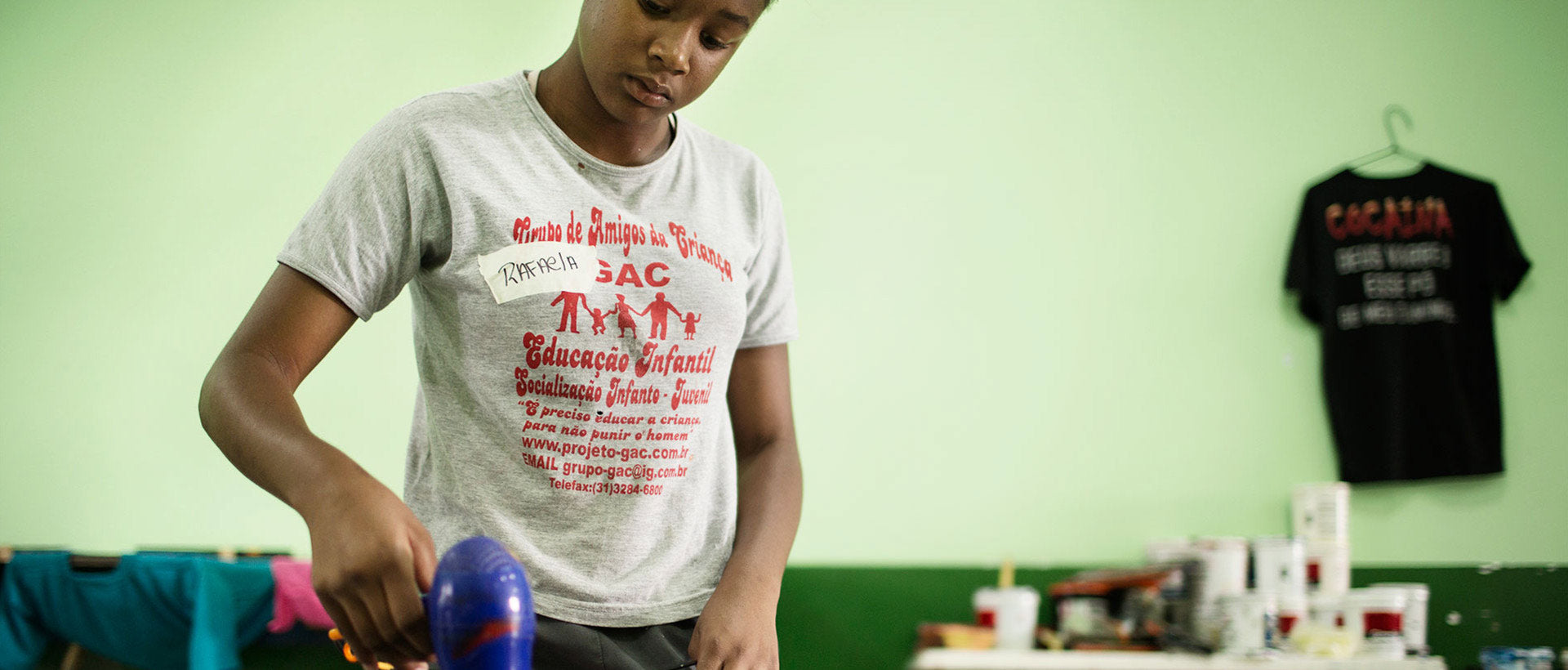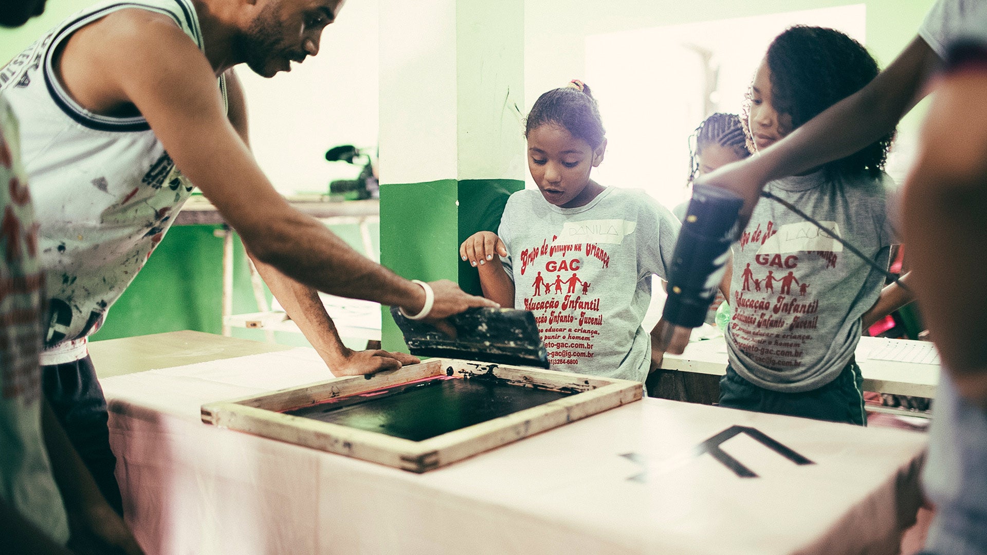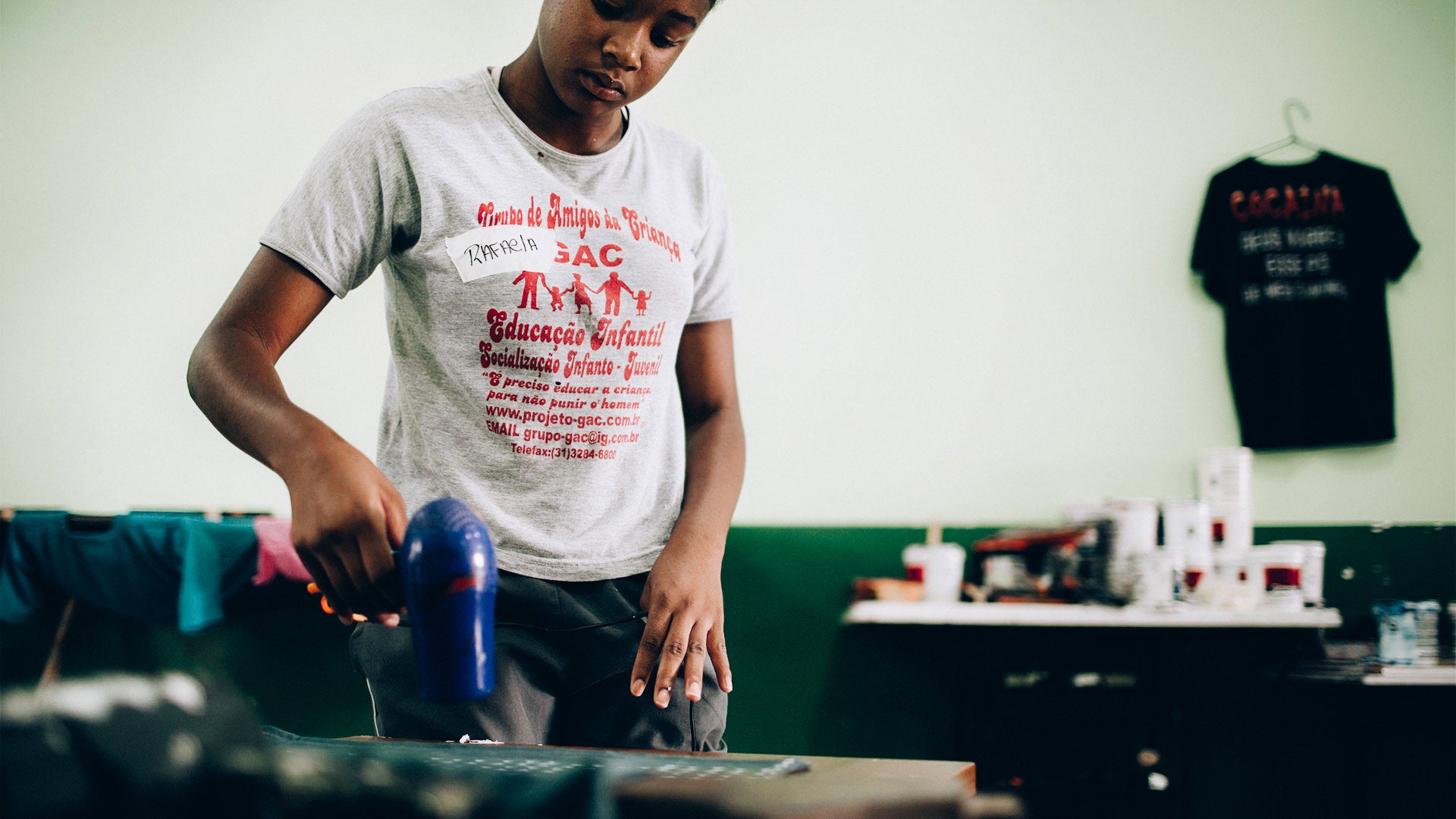 Ausschneiden, malen, zeichnen, klecksen und föhnen – zwei Wochen lang hat ARTHELPS gemeinsam mit jungen Kreativen in einer Favela in Belo Horizonte mit Materialien und Farben experimentiert. Entstanden sind faszinierende Motive, die wir zum Herzstück unserer ersten T-Shirt Kollektion gemacht haben.