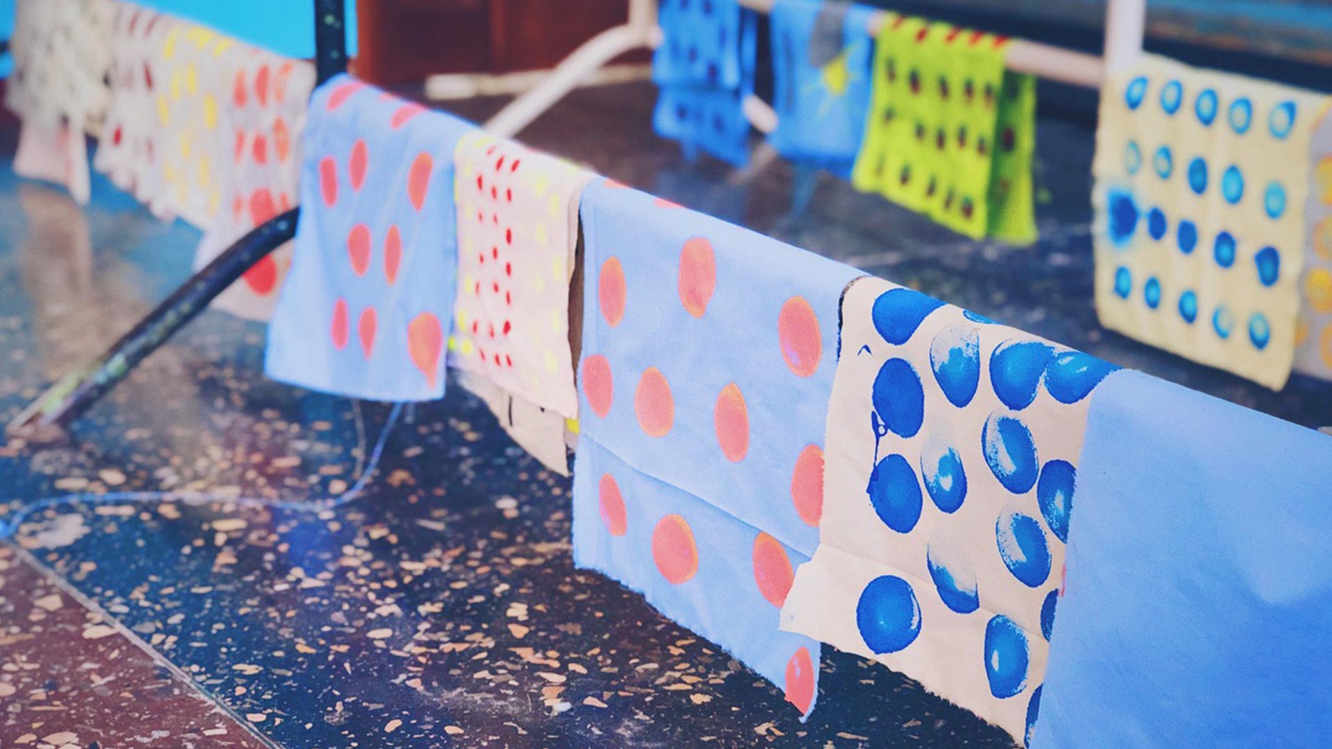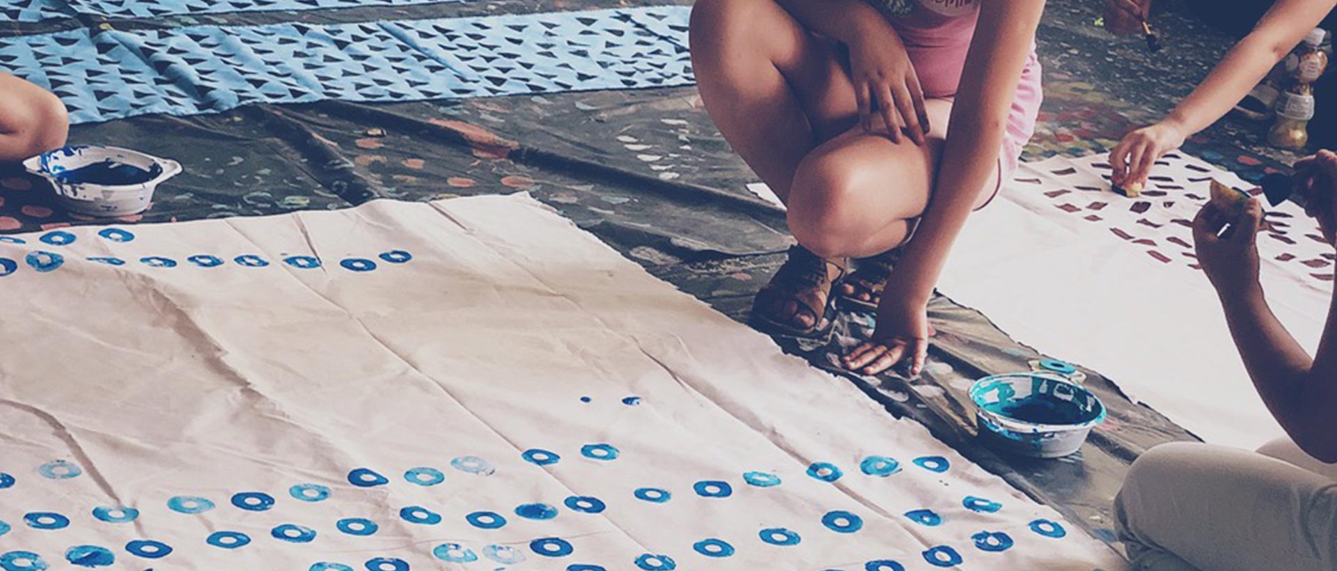 Die Kinder entwickelten einzigartige Muster und bedruckten mit Textilfarbe und selbst angefertigten Stempeln hochwertige Stoffe. Die Räume wurden täglich bunter und jedes Stück Stoff zu einem Unikat. Gemeinsam nähten wir daraus wundervolle, fantastische Figuren – jede hat ihren eigenen Charakter.